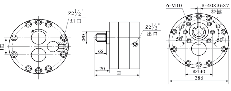 DCB-B160-500低噪音大流量液壓齒輪泵安裝尺寸圖